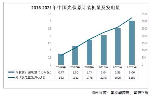 伴隨碳達峰、碳中和、“構建以新能源為主體的新型電力係統”等目標的提出,作為可再生能源持續發展戰略的關鍵技術,光伏發電行業迎來了跨越式發展機遇,正獲得前所未有的發展。多數國家陸續出台了一係列政策積極支持光伏行業擴展,截至2021年底,光伏發電並網裝機容量達到3.06億千瓦,突破3億千瓦大關,行業得到快速發展。